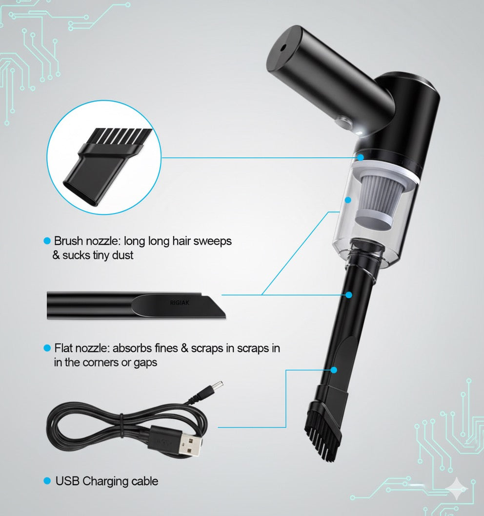 • Powerful Suction in a Compact Design: Don't let its size fool you! This handheld vacuum delivers strong suction to tackle dust, crumbs, pet hair, and debris with ease.